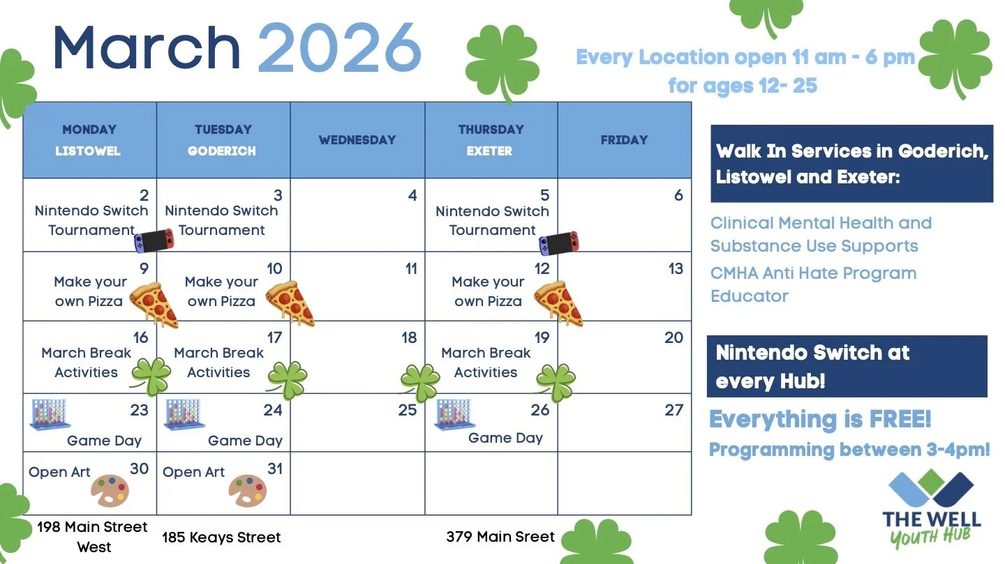 The Well CC is creating Integrated Youth Wellness Hubs based on a model developed by the Centre for Mental Health and Addiction. In addition to providing a range of social and community services, they also offer peer services, outreach, and system navigation services. Services will emphasize quality, timeliness, youth-centric integration, and co-location. The bottom line is that youth will have access to more accessible, appropriate, effective, and cost-efficient services in Huron and Perth counties.