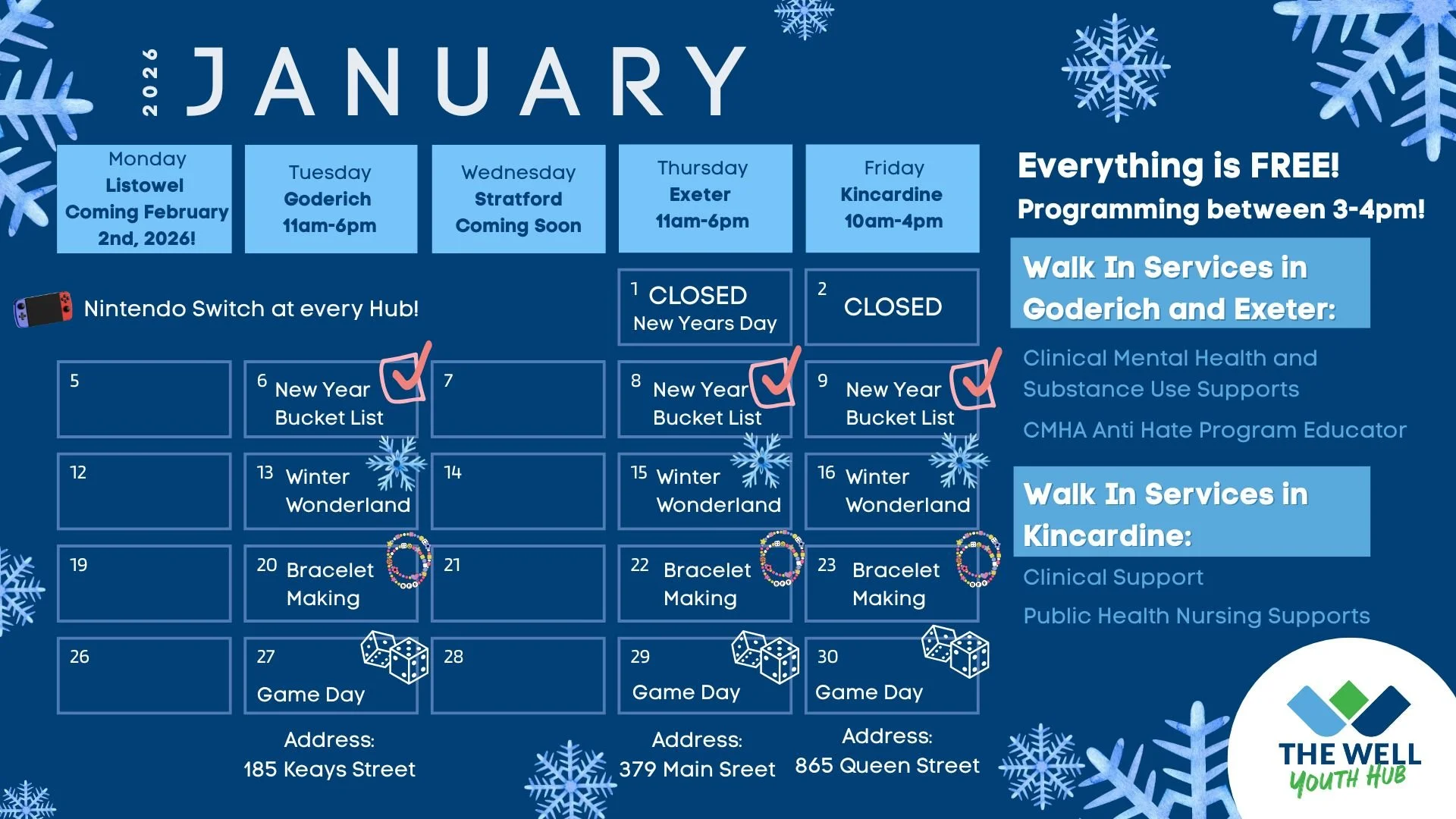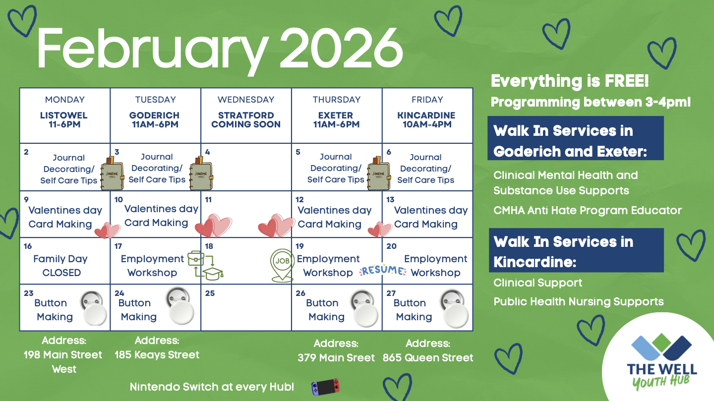 The Well CC is creating Integrated Youth Wellness Hubs based on a model developed by the Centre for Mental Health and Addiction. In addition to providing a range of social and community services, they also offer peer services, outreach, and system navigation services. Services will emphasize quality, timeliness, youth-centric integration, and co-location. The bottom line is that youth will have access to more accessible, appropriate, effective, and cost-efficient services in Huron, Perth, Grey, and Bruce counties.